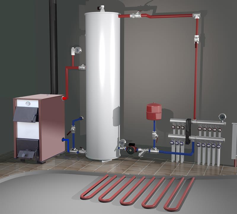 всем привет с толкнулся вот с такой проблемой.есть отопление с деланое с металопластика.и подключил тверд.котёл.сделал бак где то на 180лит.и подключил его так чтоб в друг пропал свет то церкуляцея йшла через него. подключено металической трубой диам.40.в эту трубу ближе к котлу я в резал насос.метал.трубой диам.25,в трубу диам.40.врезка на фото.по идеи насос должин выхватывать воду и подавать в систему отопление.а у меня получается что часть тепла попадает в теплоакамулят.и он полнустью прогревается.вопрос почему???по идеи насос должен затягивать гарячую воду и подавать в систему отопления а бак должен немного быть тёплым.в чом тогда проблема?